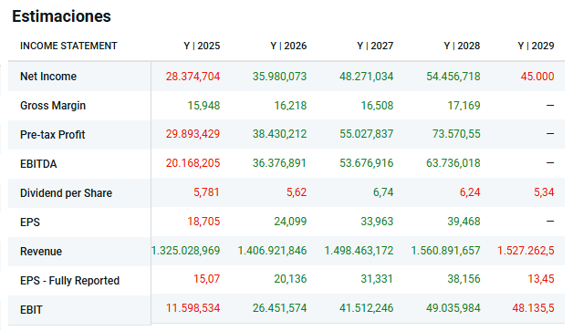 Sin embargo, al analizar las previsiones, el panorama cambia: para los próximos dos años se anticipan crecimientos superiores al 30 % anual, lo que sugiere una recuperación muy sólida si la empresa logra ejecutar sus planes.