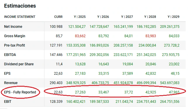A continuación, vamos a revisar las estimaciones del BPA para los próximos ejercicios utilizando la información disponible en el bróker DEGIRO: