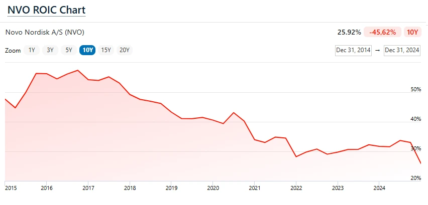 Ratio ROIC de Novo Nordisk durante los últimos 10 años según «FinanceCharts»