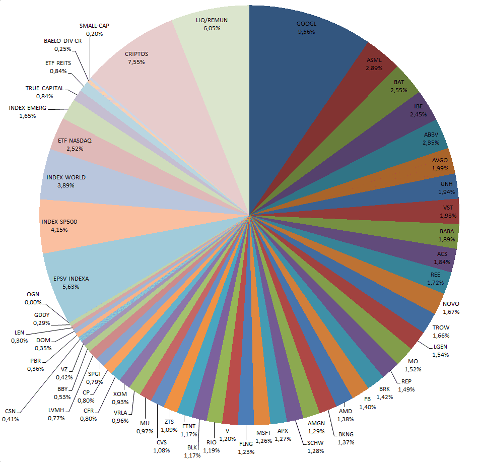 El objetivo es seguir aumentar el peso de los fondos indexados (aunque ya van cogiendo un peso considerable) y no disminuir mucho el de la liquidez. También me gustaría bajar el peso de mis posiciones en Enagás y Flex LNG, ya que tengo bastante peso en ellas, aunque solo lo haré si es a precios que considere interesantes.