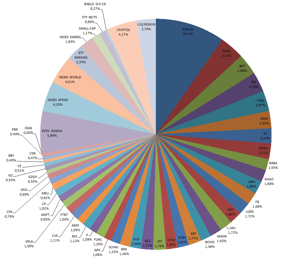 Además, he ampliado mi posición en JD.com, donde sigo viendo un escenario excesivamente pesimista descontado por el mercado, y he añadido una acción más de Booking Holdings tras la corrección que sufrió al presentar resultados. Con esta compra paso a tener dos acciones; la idea es, en unos meses, vender la que actualmente llevo en pérdidas para continuar optimizando fiscalmente las plusvalías acumuladas.